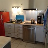 Elektroherd, Kühlschrank, Tiefkühlfach, Geschirrspüler, Mikrowelle, Geschirreinrichtung, Wasserkocher, Kaffeemaschine, Toaster, Besteck, Gläser
