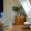 2. Obere Ferienwohnung (OG): für bis zu 4 Personen. Die helle Wohnküche hat einen Südbalkon, der auch Ihr eigener Zugang ist. Blickrichtung Nord-Ostsee-Kanal ( 90 m entfernt); 3 Schlafzimmer, eines davon im Spitzboden; gut ausgestattete Wohnküche, mit Geschirrspüler. Das Badezimmer verfügt über Wanne und Dusche.