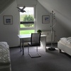 Die Wohnung bietet ein Wohnzimmer (ca. 24 qm) mit gemütlichem Eßbereich und Küchenzeile, ein Schlafzimmer (ca. 16 qm) mit Doppelbett, Bad mit Dusche und Flur, ein großes zusätzliches Schlaf-/Kinderzimmer im gemütlichen Dachgeschoß mit zwei Einzelbetten sowie einen Süd-/West-Balkon. Mit einer Gesamtfläche von 70 qm ist diese Ferienwohnung ideal für 2-5 Personen.