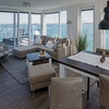 Im Obergeschoß ist der Wohn- und Eßbereich untergebracht, und auch hier ermöglichen die großen Fensterfronten wiederum einen gigantischen Blick auf Hafenbecken und Hafeneinfahrt!