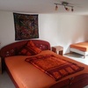 Im OG, erreichbar über eine Steile Treppe, befindet sich ein Schlafzimmer mit Doppelbett und Einzelbett.