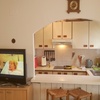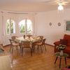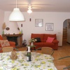 Das Wohnzimmer hat einen schönen offenen Kamin, eine einladende Sitzgruppe einen 6 Personenesstisch und TV mit Satellitenanschluss, Radio - CD u.s.w.. Die Küche mit großem Kühlschrank bietet alles was man zum Kochen braucht, selbstverständlich ist: Mikrowelle, E. Kochplatten u.s.w..
