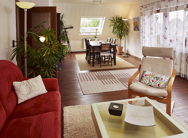 komplett eingerichtete 90m² große Ferienwohnung mit einen 12m² großen Balkon auch für Raucher,