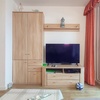 Im Wohn-/Schlafraum ist ein Doppelbett (180x200cm), im separaten Kinderzimmer bzw. 2. Schlafraum befindet sich ein Etagenbett mit den Maßen 90x200cm. Die Küche bietet Platz genügend Platz für 4 Personen und ist sehr gut ausgestattet. Zudem steht nach der Renovierung eine Mikrowelle mit Backofenfunktion und außerdem ein Geschirrspüler zur Verfügung.