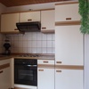 Elektroherd, Kühlschrank, Geschirreinrichtung, Wasserkocher, Kaffeemaschine, Toaster, Besteck, Gläser