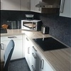 Elektroherd, Kühlschrank, Mikrowelle, Geschirreinrichtung, Kaffeemaschine, Toaster, Besteck, Gläser