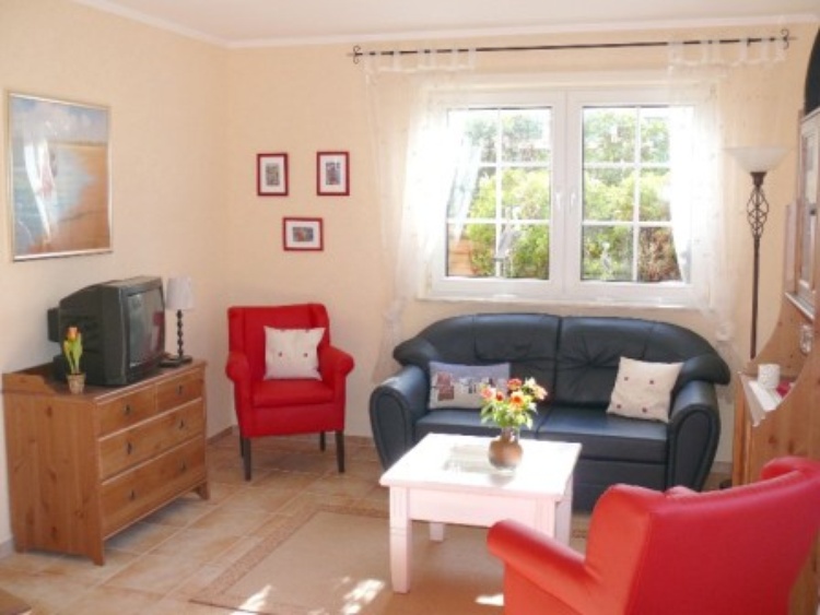 Wohnraum mit Küchenzeile (Einbauküche, 4-Platten-Herd, Backofen, Dunstabzugshaube, Kühlschrank mit Gefrierfach, Geschirrspüler, Kaffeemaschine, Mikrowelle, Mixer, Toaster, Wasserkocher), Essecke, Sitzecke. Kabel-TV, CD-Player, Radio, Telefon. Schlafraum mit Doppelbett. Duschbad/WC, Flur. Große, möblierte Sonnenterrasse. Eigener Pkw-Stellplatz direkt an der Wohnung.