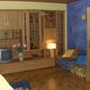 mit einem großen Wohnzimmer (Doppelbettcouch, Anbauwand, Sideboard, Sat-Fernseher und Stereoanlage
