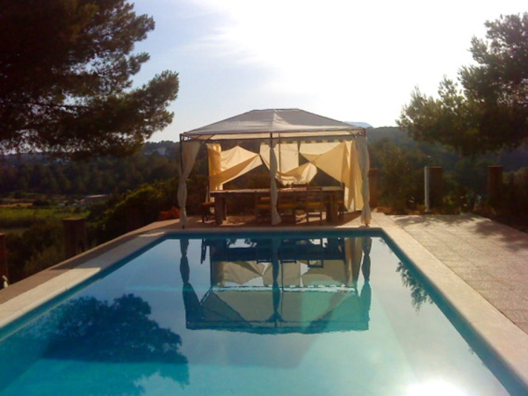 Die Cala Jondal liegt im SW der Insel, 5 km vom Flughafen entfernt (Entfernung Ibiza-Stadt: 10 Km). Sie ist immer noch einer der unberührtesten Buchten Ibizas, nur mit einzelner, weit verstreuter Bebauung, ohne Hotelanlagen oder Ferienanlagen. Sie gilt als einer der schönsten der Insel. Das Haus ist auf einem Felsvorsprung gebaut mit freier Sicht auf die Cala Jondal, ca. 300m Luftlinie vom Meer entfernt. Es ist nach Süden ausgerichtet, was den ganzen Tag Sonne garantiert.