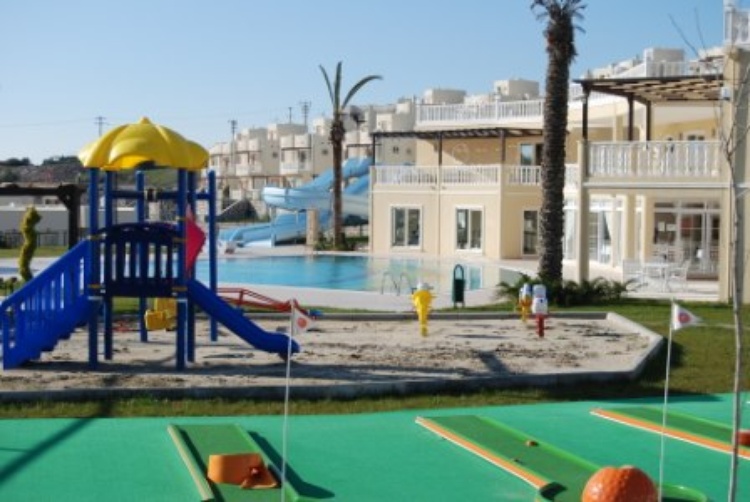 Die Ferienanlage besteht aus mehreren 2 und 3 stöckigen Bungalows im regionaltypischen Stil. In der weitläufigen Gartenanlage befinden sich 8 Süsswasserpools,darunter ein Hauptpool mit Wasserrutsche,Poolbar,Hallenbad(heizbar), Restaurant mit offener Terrasse,Minimarkt, Kinderspielplatz,Fitnesscenter,Türkisches Bad,Sauna,Friseur,Doktor,Minigolf,Tennisplatz.Die Poolanlage ist von Anfang Mai bis Ende Oktober geöffnet.Liegen und Sonnenschirme sind inklusive.Eine Badebucht mit Bar-und Restaurantbetrieb liegt hinter halb der Anlage.Ein Shuttleservice und Lift zum Strand ist vorhanden. Die Wasserqualität in dieser Region ist hervorragend.