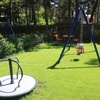 Kinderspielplatz mit Doppelschaukel und Karussell;