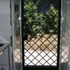 Gesonderter Garten mit Velarium, Gartenmöbel und Barbecue.