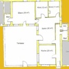 Das Haus ist in L-Form gebaut. Es hat drei Schlafzimmer für jeweils zwei Personen.