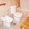 Badezimmer: Duschbad mit WC, Waschbecken und Bidet