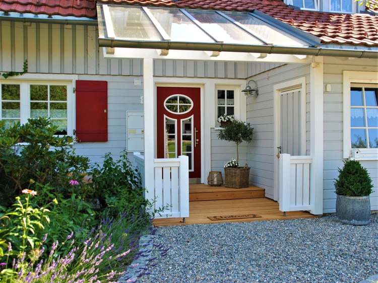 Die sonnige Landhaus-Wohnung befindet sich im Erdgeschoss unseres in ökologischer Bauweise errichteten Holzhauses. Entspannen Sie im Wintergarten des großzügigen Wohnzimmers mit Blick in den idyllischen Garten. Oder lassen Sie die Seele baumeln und entdecken Sie Ihren Lieblingsplatz im großen Garten, der herrlich eingewachsen ist und mit üppigen Blumenbeeten, Büschen, Küchenkräutern und Beerenobst zum Selberpflücken lockt.