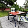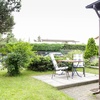 * kleiner Garten mit Terrasse und Sitzmöbel.