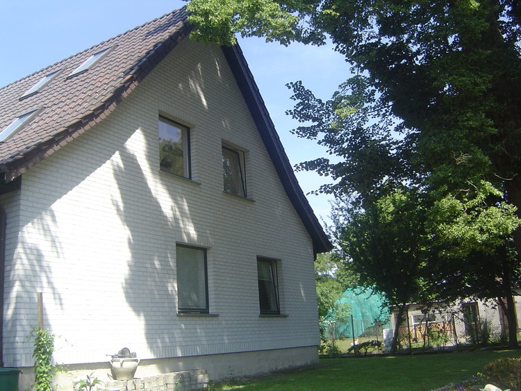 Eine schöne 75 qm große FeWo, mit Einbauküche, einem schönen Wohn-Schlafzimmer,einem Bad mit Dusche und WC und einem seperatem Eingang mit kleinem Flur! Tisch und 4 Stühle für den Aussenbereich!