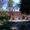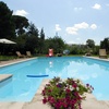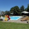 Was man als Erstes begegnet, wenn man zum Hof gelangt, ist die Allee aus Eichen und Kastanienbäumen. Dann gelangt man zum Schwimmbad und zum Haus.