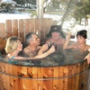 Unter Der Ferienwohnung befindet sich ein Ruheraum mit großer Sauna, Infrarotkabine, Saunaliegen und einem Kaminofen, im Garten unter der großen Linde sorgt ein Hot Pot- Jakuzzi oder Badezuber für Badespaß