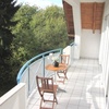 Durch die Glasfenster bis zum Fußboden über die gesamte Breite des Wohn- und Schlafzimmers vermittelt Ihnen diese Wohnung eine mediterrane Atmosphäre: weiter Blick ins Grüne, sonnige Helligkeit. Beide Zimmer mit Zugang zum Südbalkon, der genauso breit ist wie die Wohnung.