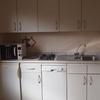 Gasherd, Kühlschrank, Geschirrspüler, Mikrowelle, Geschirreinrichtung, Kaffeemaschine, Besteck