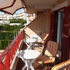 Auf dem Balkon stehen Gartenstühle mit Auflagen, runde Gartentische, ein Elektro-Grill und es gibt eine Markise. Weitere Ausstattung: