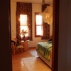 Vom Erkerschlafzimmer führt eine Tür auf den Balkon.