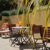 Verbringen Sie ruhige Momente im gemütlichen Biergarten mit Blick auf die afrikanischen Pflanzen.
