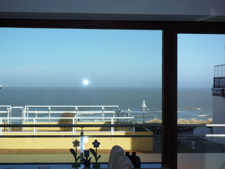 Nichtraucher 3-Zimmerwohnung mit fantastischem Nordseeblick über die Strandpromenade zeitweise bis Helgoland durch die 4 m breite Fensterfront jeweils vom Wohnzimmer und Schlafzimmer aus.