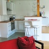 Elektroherd, Kühlschrank, Mikrowelle, Geschirreinrichtung, Wasserkocher, Kaffeemaschine, Toaster, Besteck, Gläser