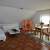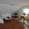 Wir bieten eine großzügige 75qm Ferienwohnung mit 5 Schlafplätzen in 3 Schlafzimmern, Wohnküche mit großen Fernsehern, Bad mit Dusche, Badewanne, Waschbecken, WC und einer großen Dachterrasse in Südlage mit freiem Blick in die Natur.