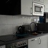 Elektroherd, Kühlschrank, Tiefkühlfach, Geschirrspüler, Mikrowelle, Geschirreinrichtung, Wasserkocher, Kaffeemaschine, Besteck