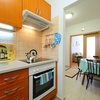 Elektroherd, Kühlschrank, Tiefkühlfach, Geschirrspüler, Mikrowelle, Geschirreinrichtung
