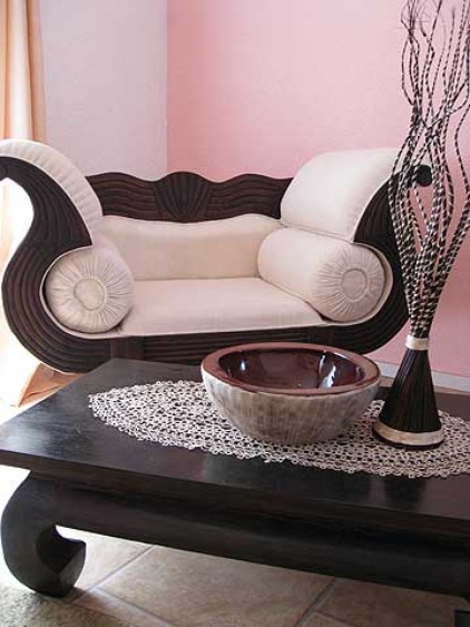 Apartment mit 1 Zi. für 2 Pers. Hochwertig im balinesischen Stil eingerichtet. Bad (Dusche/WC), Doppelbett für 2 Personen, angrenzend eine Terrasse sowie einen Garten mit Teich, Grillmöglichkeit.Ausstattung: kleine Küche, Kühlschrank, Kochgelegenheit,TV (DVB-T), DVD, Doppelbett, Terrasse, Fussbodenheizung, Mikrowelle, Radio. Der Wintergarten wird gemeinsam mit einem 2ten Apartment genutzt und ist mit Kicker inkl. 12 Spielen sowie elektrischem Kamin ausgestattet. Freizeitangebote: Europa Wanderweg, der Müggelsee in ca. 3 km.Optional Fahrradausleih, HP/Frühstück. Hotelübliche Wäsche, gratis Hausschuhe, tägliche Reinigung inklusive.