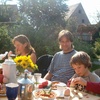 Auf dem Dach wurden die alten, handgemachten Biberschwanzziegel wiederverwendet. Es gibt einen großen Garten, zahme und verspielte Katzen, die man streicheln kann und Hühner und Laufenten zu beobachten, Obst zum ernten. Lagerfeuer und Stecken für Stockbrot. Viele Naturmaterialien findet man auf dem Grundstück mit denen man Basteln kann. Ein Spielplatz ist direkt gegenüber, nahezu keine Autos, das das Dorf nur 85 Einwohner hat. Die Nachbarn haben zwei Pferde, der andere Nachbar hat Schafe und auch Haflingerpferde