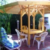 Eine abgeschlossene Gartenecke steht zum gemütlichen Frühstück bereit.