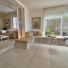 Im Haus kann ein geräumiges Wohnzimmer mit Sitzecke und Schlafcouch ebenso zu begeistern wissen, wie der idyllische und erholsame Garten. Vom Wohnzimmer aus schweift der Blick durch große Glastüren in Richtung Meer. Von dort aus gelangt man auf die möblierte Loggia.